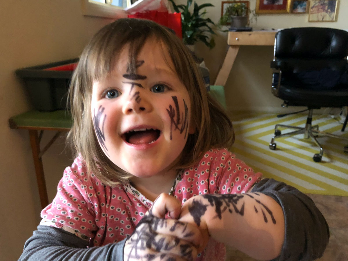 Note: Matt has the kids today and Alice got into my office ‘nook’ and found my sharpies (PERMANENT BLACK MARKERS) - If I had a TinyOffice I’m pretty sure this wouldn’t have happened!