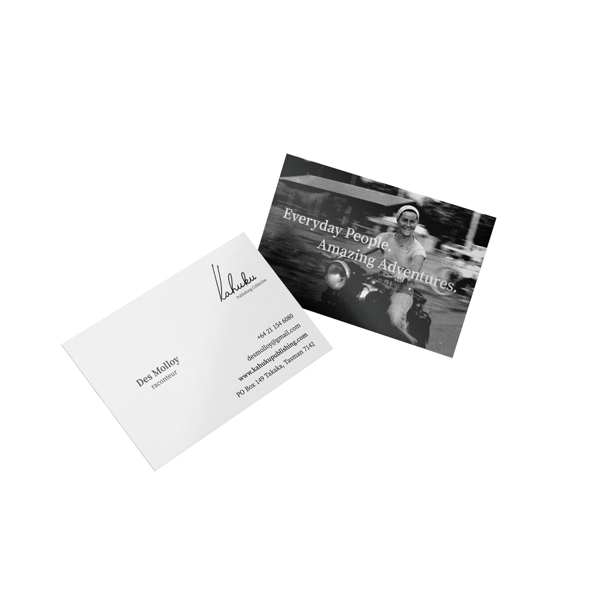 Kahuku Publishing was born from prue frustration. Author Des Molloy took things into his own hands after failing to get his books published and created a company that supports the self published author with the craft and professionalism that trumps any of the major publishers. The word ‘Kahuku’ means monarch butterfly in Māori and the logo represents the resting silhouette of the butterfly. The identity system is supported with a natural palette that enhances that design of the books. Des has worked closely with us in implementing an Indesign Workflow making his turnaround time incredibly fast for such a small team.