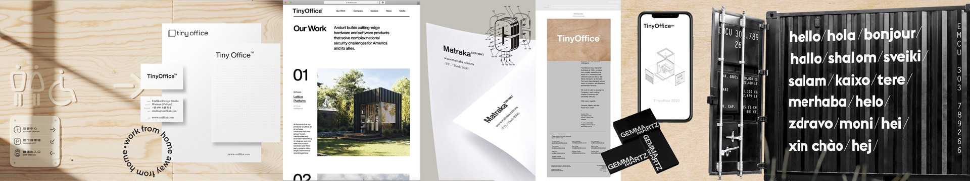 TinyOffice is a ‘Pandemic Pivot’ like no other! The company launched from idea to product in only 5 months with the aim of helping people who are now working from home but don't have the space to do so comfortably. The identity system needed to be clear and precise. It is important that the name explained what the product was so customers could easily recall the brand when considering their working options moving into 2021. The typeface, Eina gives a trustworthy and professional feel while complementing the premium design of the studios.